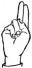 На ћирилици написано ВУКОСАВ ВЕСОВИЋ састоји се из 14 слова [?]. Исписано ћириличном једноручном азбуком за глувонеме: